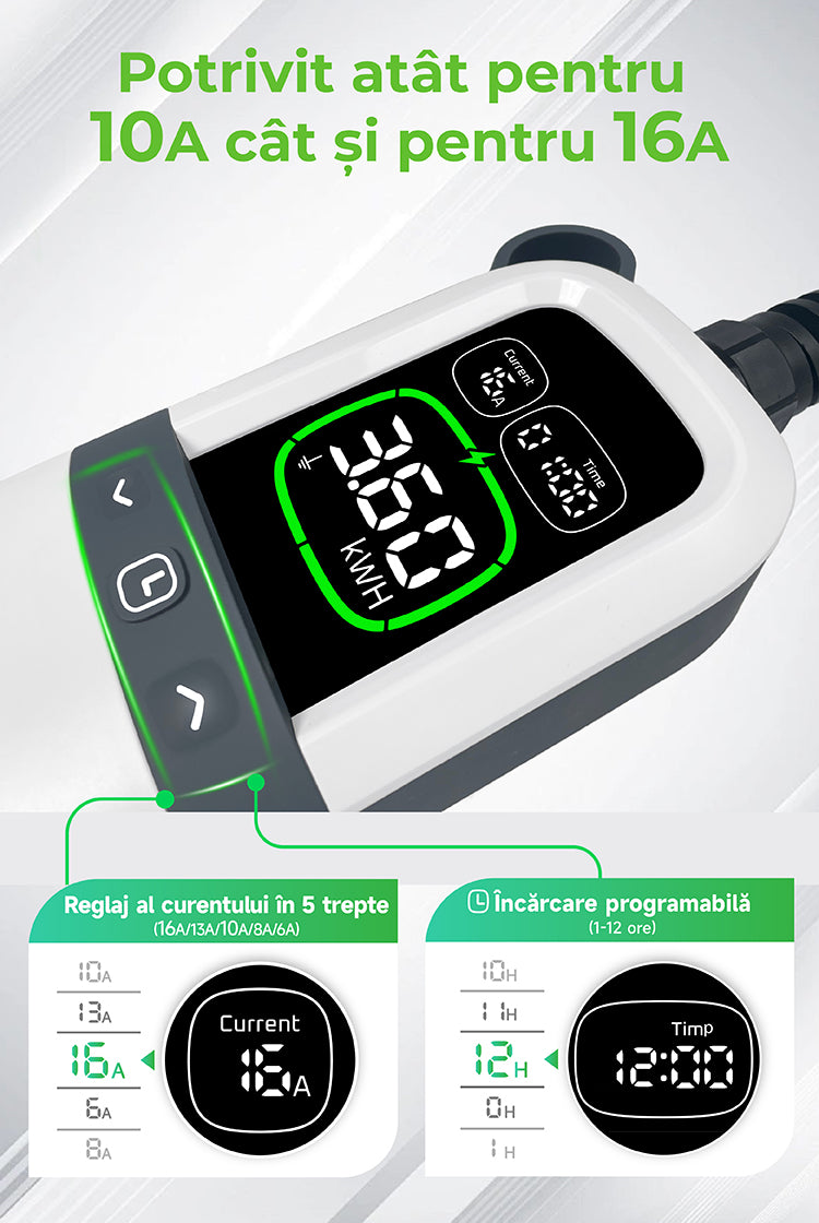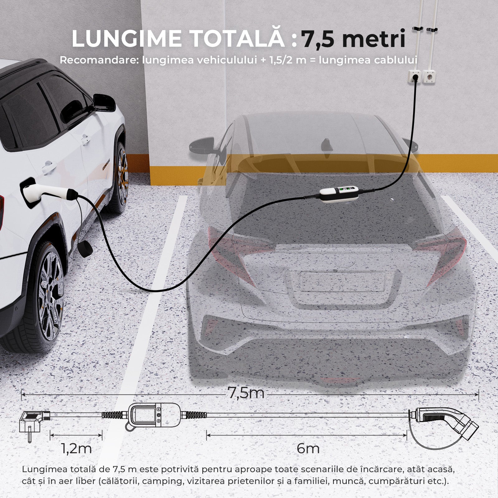The 7.5-meter charging cable allows flexible charging even from more distant parking spaces, making it versatile for both indoor and outdoor use.