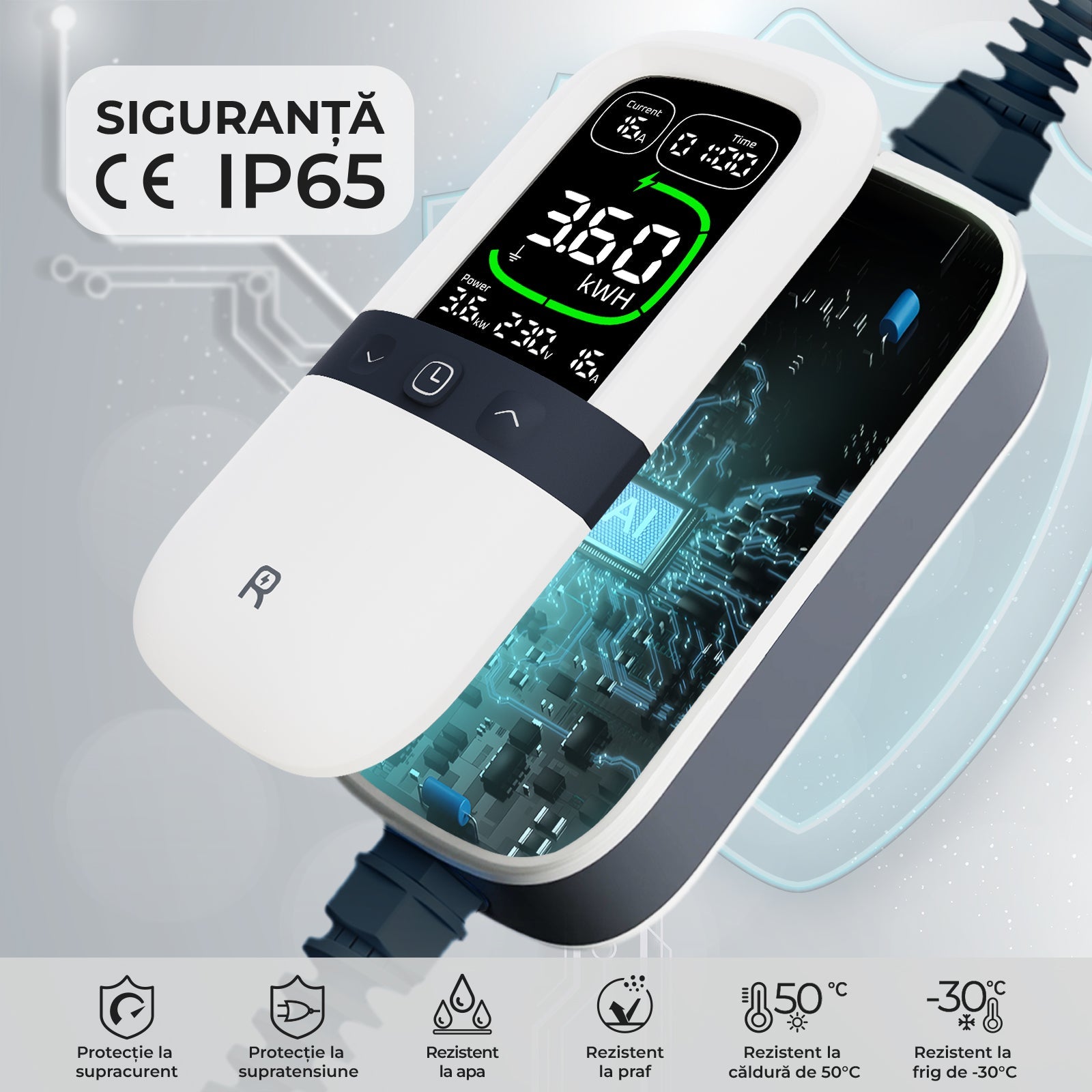 Our charger features RCD protection, which immediately cuts off the power in the event of an electrical fault, protecting you and your device from potential dangers.